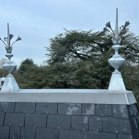 La zinguerie est assemblée à l’ancienne (soudure à l’étain).